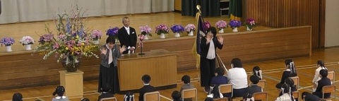 終業式で、校長先生が、子どもたちが成長したことやがんばったことについて、学年ごとに紹介しました。