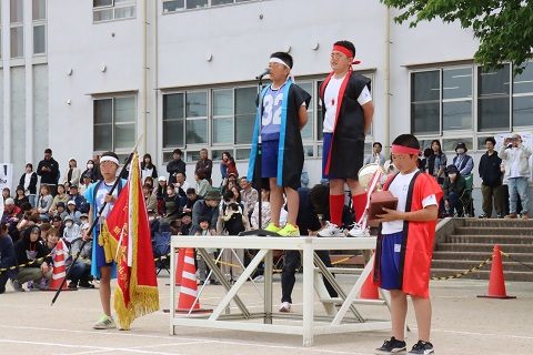 応援団は、6年生の団長を中心にして、運動会の練習はもちろん、休み時間にも練習を重ねてきました。運動会当日はその成果が発揮され、甲乙付けがたい盛り上がりを見せました。競技の部は、後半戦での連勝で白組が詰め寄りましたが、紅組がわずか3点差で逃げ切り、優勝しました。応援の部は8点差という僅差で白組が応援賞を勝ち取りました。