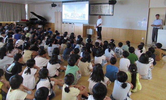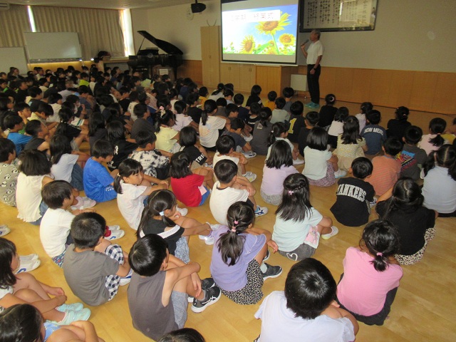 2学期が始まり、学校に子どもたちの元気な声が戻ってきました。子どもたちの顔を見ると、一人一人が有意義な夏休みを過ごしたことが感じられました。始業式では、校長先生から、アメリカのアニメーター、映画プロデューサーであるウォルトディズニーさんについての講話がありました。