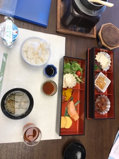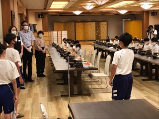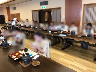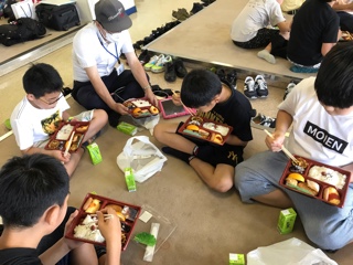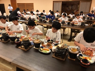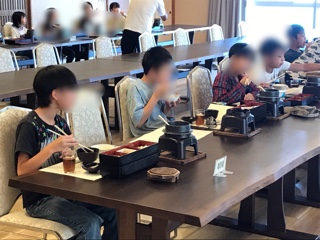 2日目が始まりました。今日の活動のために、しっかり食べましょうと、みんなでいただき