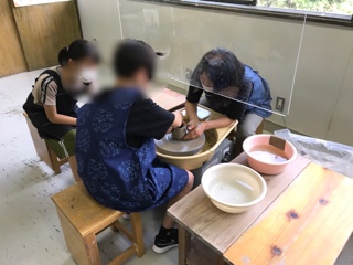 陶芸は、まず、各自が自由に模様を付けた皿を作りながら、