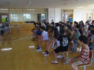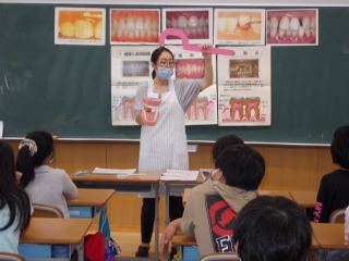 6月15日(火)4校時にむし歯予防教室を行いました。市役所の歯科衛生士さんからのお話で,高学年は,歯周炎の病気の症状と予防法について教えてもらいました。お話の後,子どもたちは互いの歯を確認し合い,関心を高めている姿が見られました。