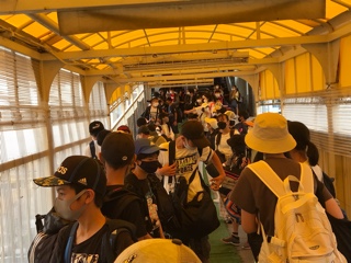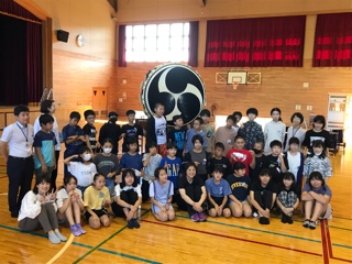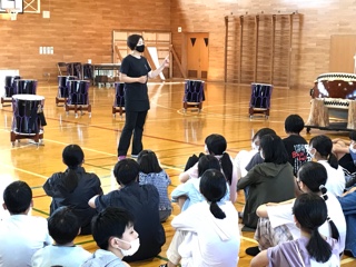 太鼓体験交流館で、3つのグループに分かれて太鼓を叩きました。サミー先生の教えに沿っ