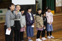 始業式の校長講話では、「理由があります」という本の読み聞かせがありました。その後、生徒指導のめあて「気持ちのよい挨拶や返事をしよう」について4年生の代表児童の発表がありました。