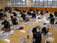 1月8日(水)に校内書き初め大会がありました。1、2年生は硬筆で、3〜6年生は毛筆で書き初めを行いました。子どもたちは、1字ずつ丁寧に集中して書いていました。
