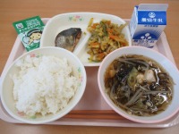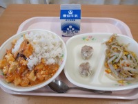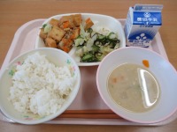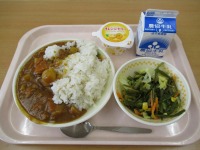 じゃがいものカレー炒め もずく汁 牛乳