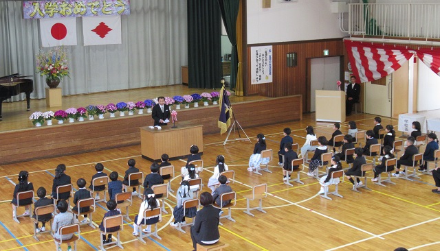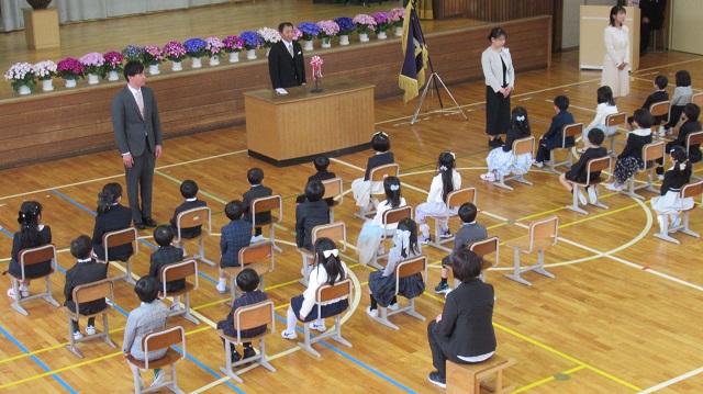 新1年生36人が、東小学校の仲間入りです。「子どもたちも先生も、みんなが入学してくるのを、楽しみに待っていましたよ。」と、校長先生からお話がありました。