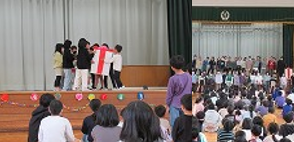 4年ぶりに全校児童が集まり、6年生に感謝する会を開くことができました。それぞれの学年で6年生に感謝の気持ちを伝えるために、ダンスや飾り、色紙渡しと工夫をして活動をしました。また、6年生はそのお返しとして全力でフリーダムを踊りました。全員で本気で一つのことをやり遂げるよさを1から5年生に示してくれました。