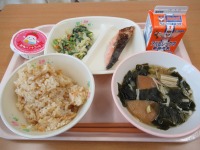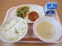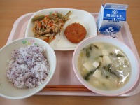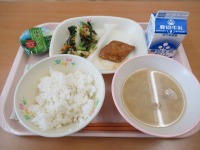 アーモンドあえ 新発田ふのすまし汁 牛乳