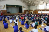 各学年が「ようこそ東小学校へ」の気持ちを、出し物やプレゼントで表現しました。1年生を歓迎する空気が体育館に溢れていました。