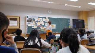 年に数回、新発田市教育委員会の方に出前講座をしていただいています。これは、3年生の授業風景です。国語で「すがたをかえる大豆」の学習をしました。今回は、栄養士さんに、教科書に載っていないような大豆の変身や大豆の栄養素について教えていただきました。